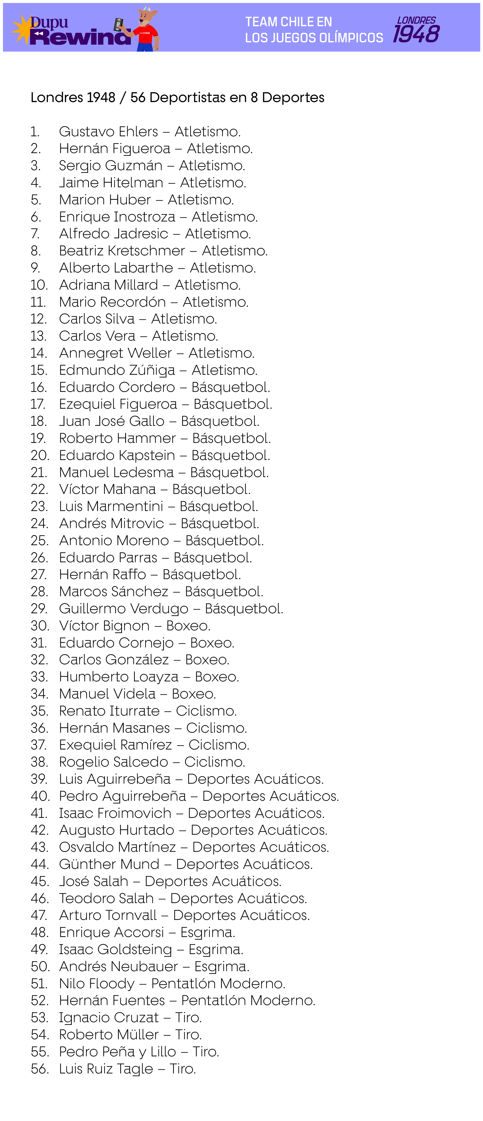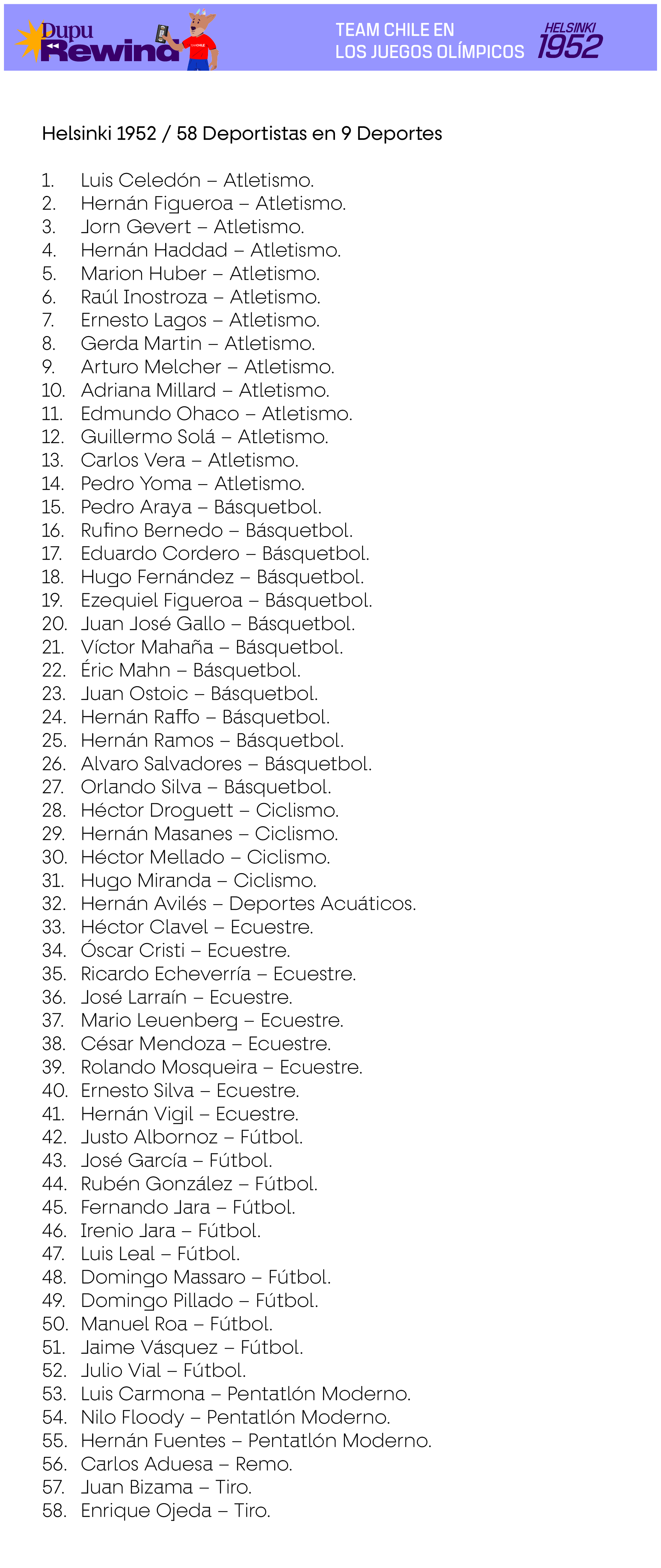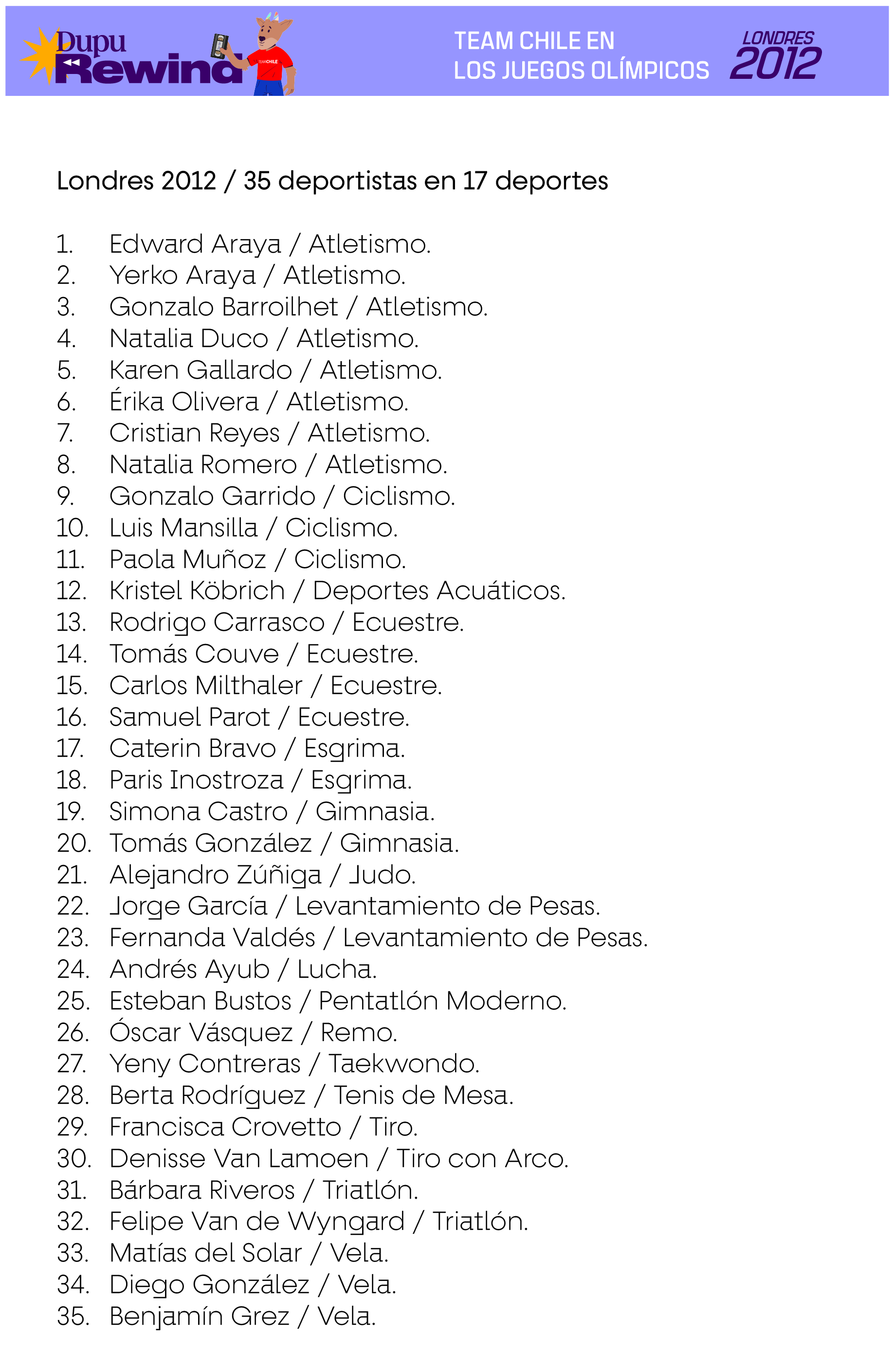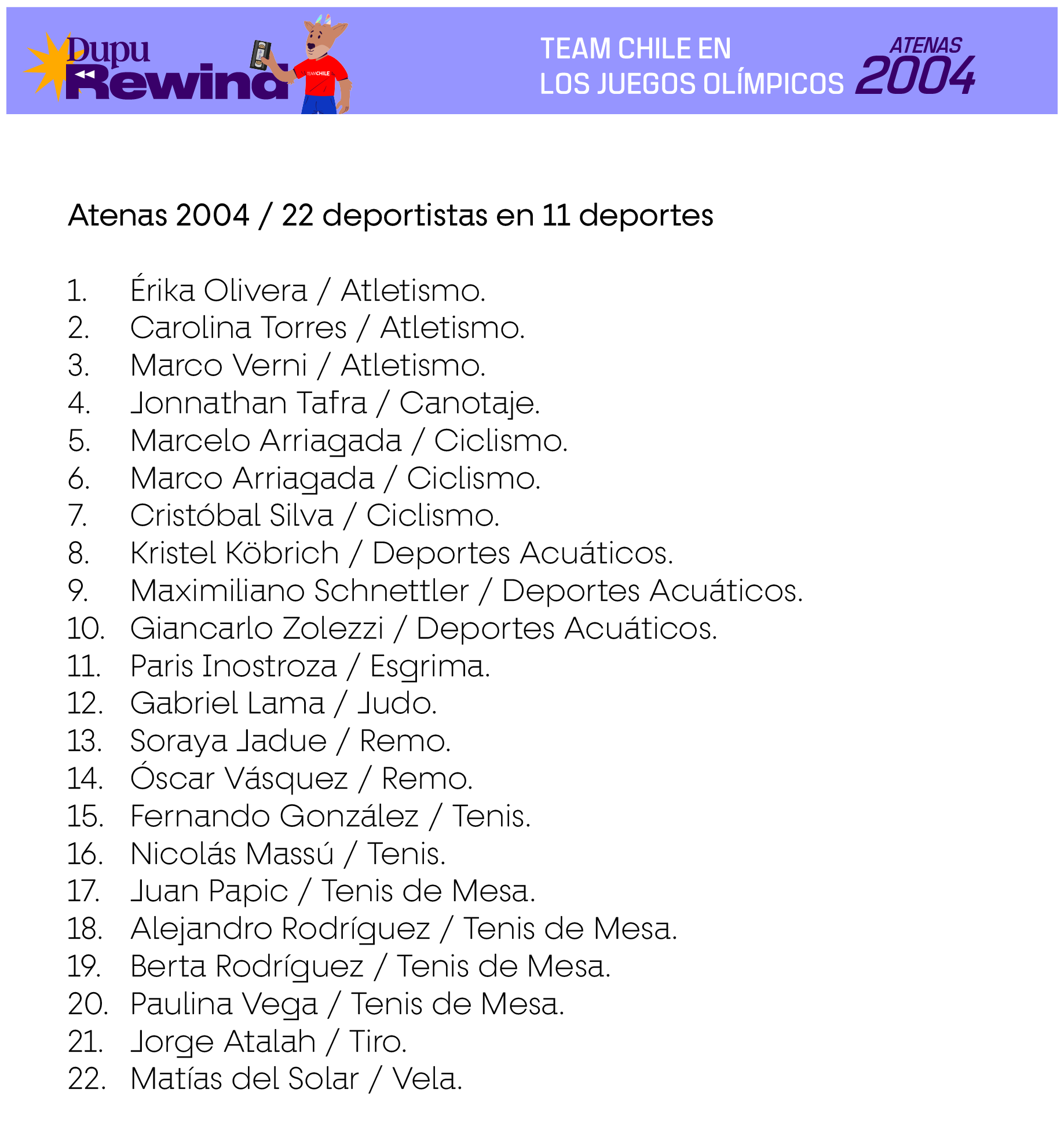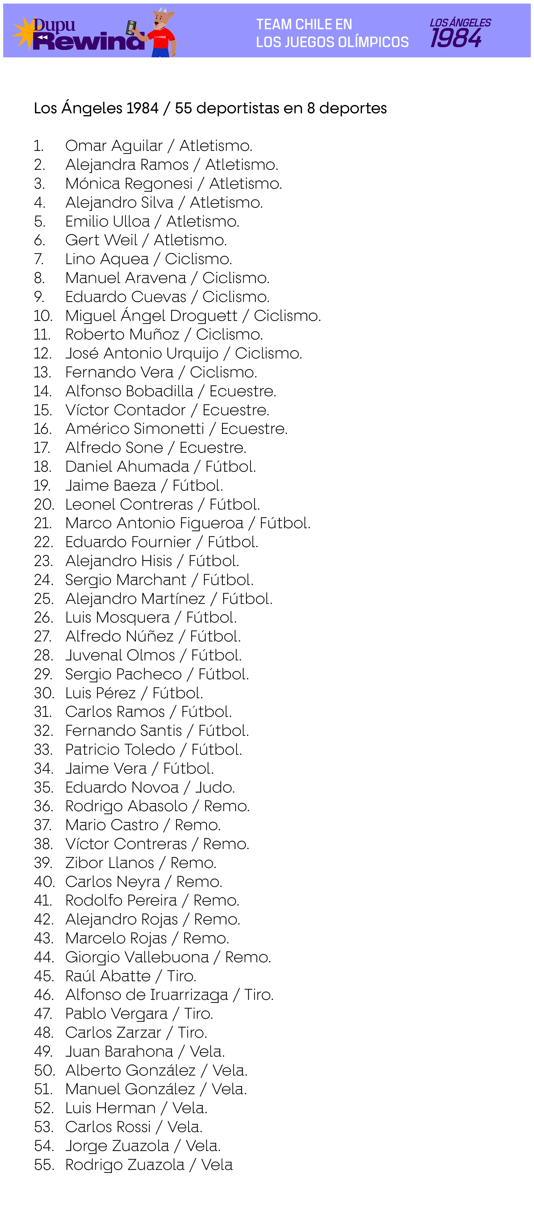Las siguientes delegaciones consideran a deportistas que efectivamente compitieron en deportes oficiales del programa deportivo de cada Juego, en base a la información existente en Start Lists del Comité Olímpico Internacional, Informes Oficiales de cada Comité Organizador Local u otra evidencia de primera fuente. En el caso de los deportes colectivos, se consideran también a los suplentes que no hayan tenido minutos de juego siempre y cuando estén en los listados oficiales como habilitados para jugar en caso de haber sido requerido.