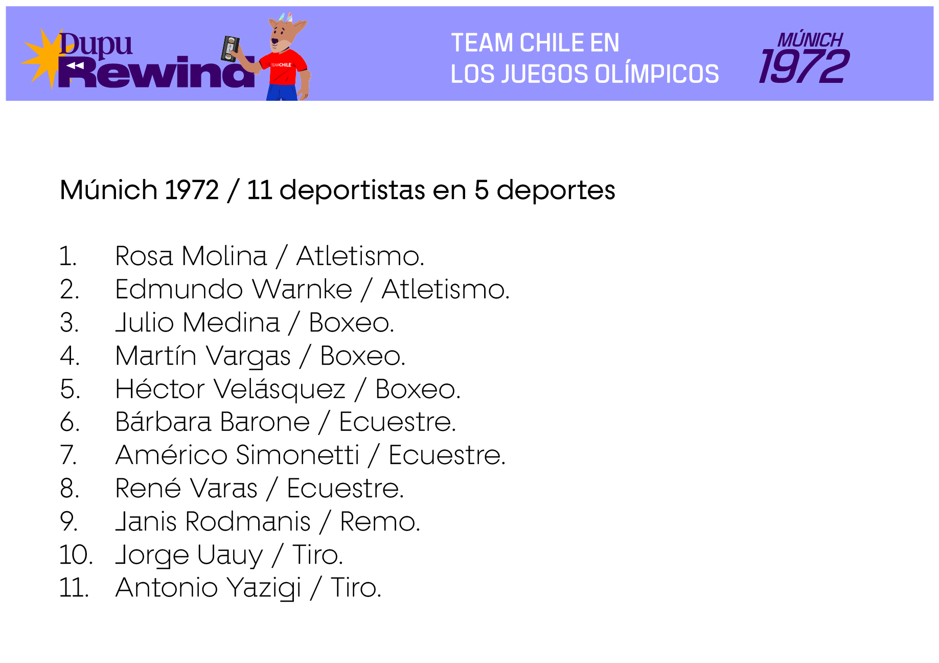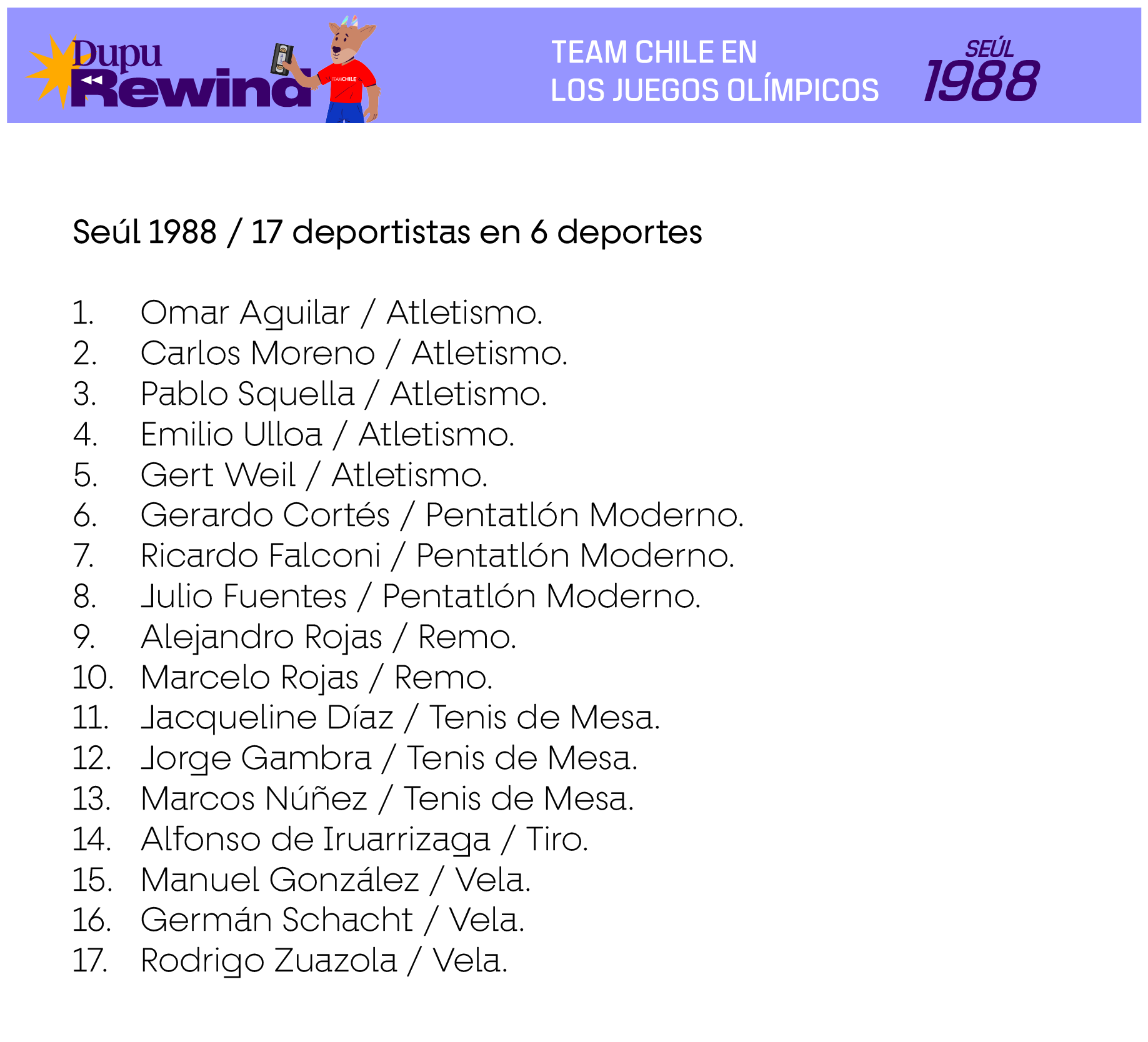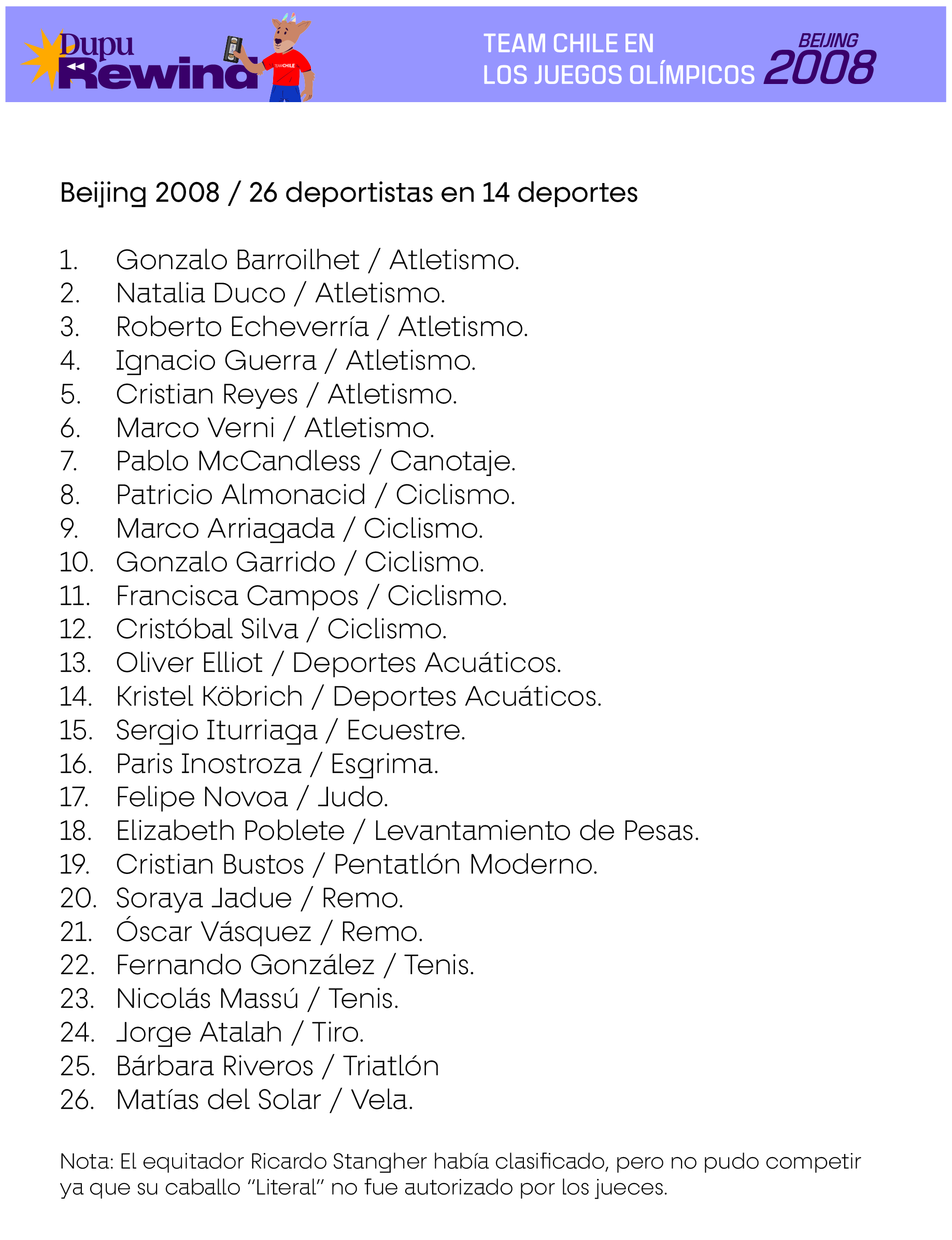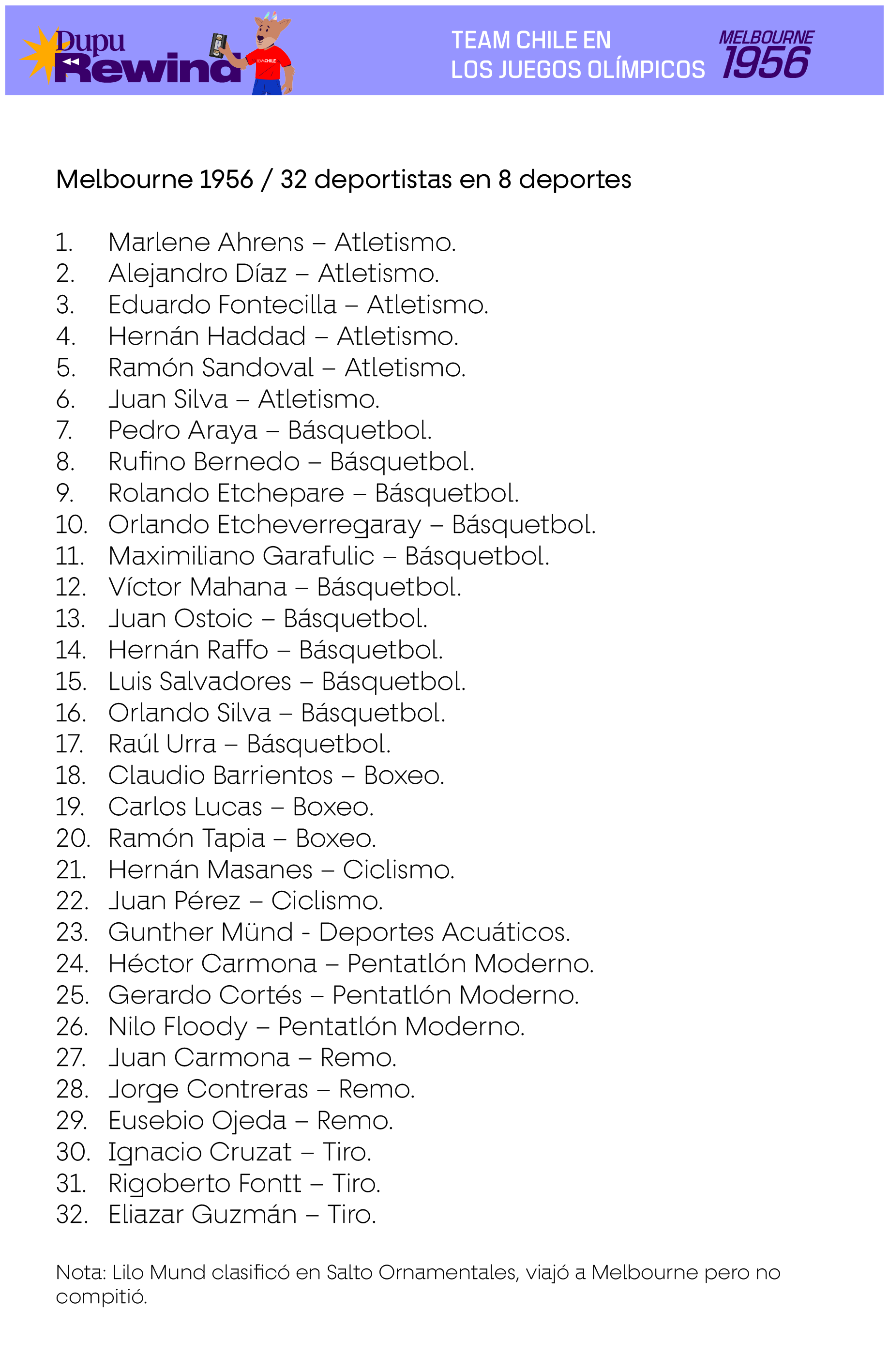 Las siguientes delegaciones consideran a deportistas que efectivamente compitieron en deportes oficiales del programa deportivo de cada Juego, en base a la información existente en Start Lists del Comité Olímpico Internacional, Informes Oficiales de cada Comité Organizador Local u otra evidencia de primera fuente. En el caso de los deportes colectivos, se consideran también a los suplentes que no hayan tenido minutos de juego siempre y cuando estén en los listados oficiales como habilitados para jugar en caso de haber sido requerido.
