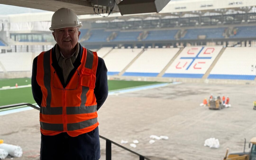 El presidente del Comité Olímpico de Chile, Miguel Ángel Mujica, fue invitado a conocer el avance de las obras del Claro Arena, nuevo estadio del Club Universidad Católica que prontamente será inaugurado.